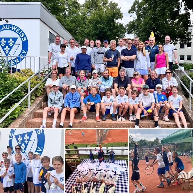 Wir hatten am Pfingstmontag Rekordbeteiligung von 54 Tennis Begeisterten im Blau Weiss. Ein bunter Mix aus jung und alt hat knapp 4 Stunden bei bestem Wetter unter der Leitung von Annette Lang um die Schleifchen gekämpft. Das junge Duo Anna Lindemann und Caspar Klein waren nahe dran die letztlichen Sieger des Turniers John Fox und Rico E. zu bezwingen. Am Ende fehlten nur wenige Punkte. Dank des engagierten Einsatzes und Coaching von Helga Glöckler haben auch unsere jungen Mitglieder ein fabelhaftes Turnier mit glücklichen Siegern gehabt. 🥂☀️💪